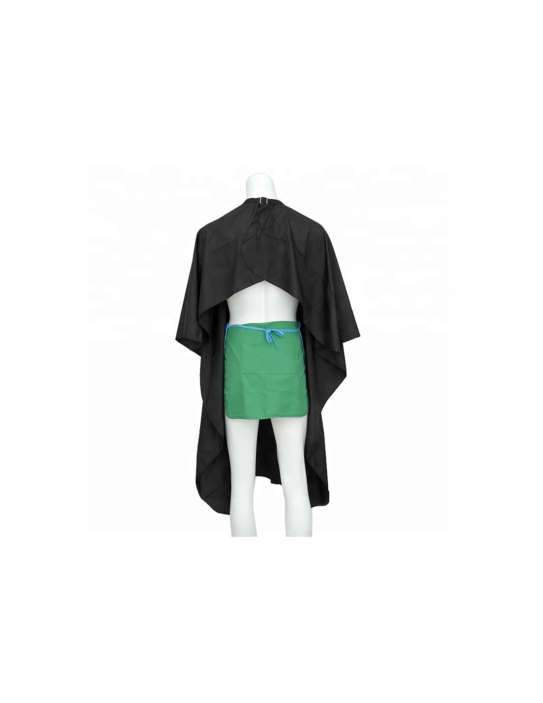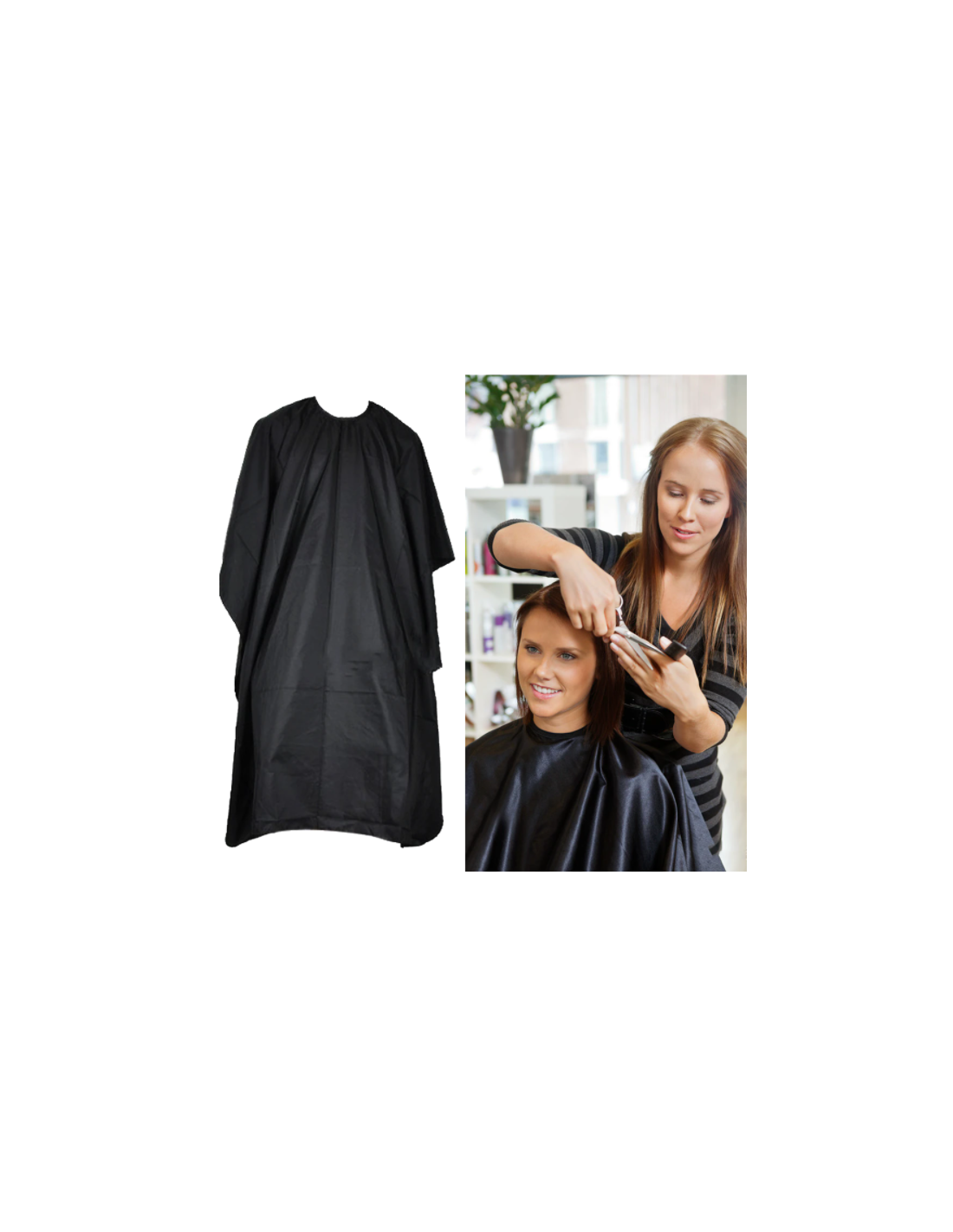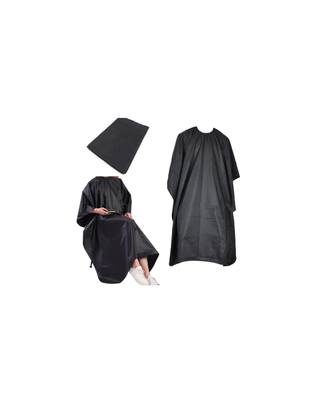 Para salón de belleza, barbería, envoltura protectora, bata de corte impermeable color negro. Su superficie lisa es perfecta para sacudir el pelo cortado fácilmente, no se dejará pelo en la capa después de agitarlo suavemente.