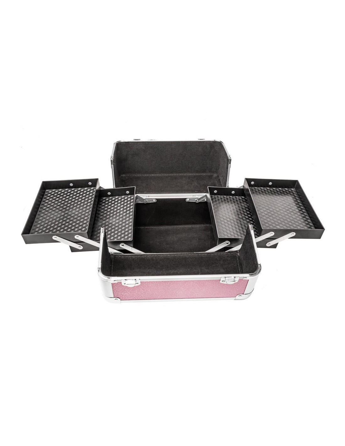 Nuestro maletín para cosméticos presenta un acabado excelente. Equipado con 4 compartimentos grandes desplegables, ofrece mucho espacio de almacenamiento para todo tipo de utensilios. Gracias a los distintos compartimentos, sus utensilios se mantendrán siempre ordenados y separados. Las superficies interiores están revestidas de terciopelo negro.