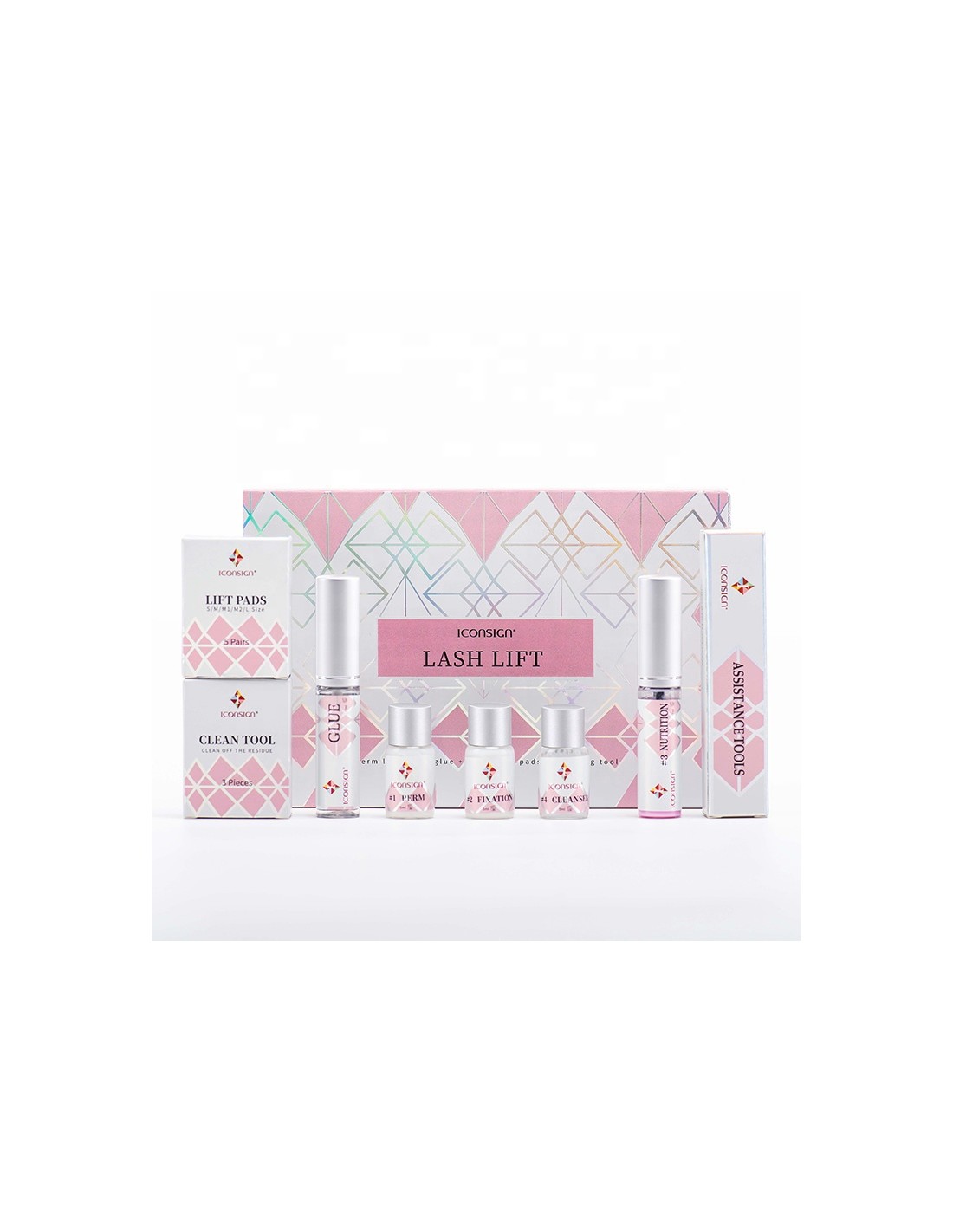 Es una forma innovadora de mantener las pestañas rizadas y con un aspecto más joven, este Kit para levantamiento de pestañas, todo en uno incluye: un kit de elevación de pestañas Iconsign: 1 loción permanente + 1 loción de fijación + 1 cuidado nutricional + 1 limpiador + 5 pares de almohadillas de silicona + 1 pegamento fuerte para levantar pestañas + 3 almohadillas para ojos + 1 cepillo para levantar pestañas y laminar cejas.
