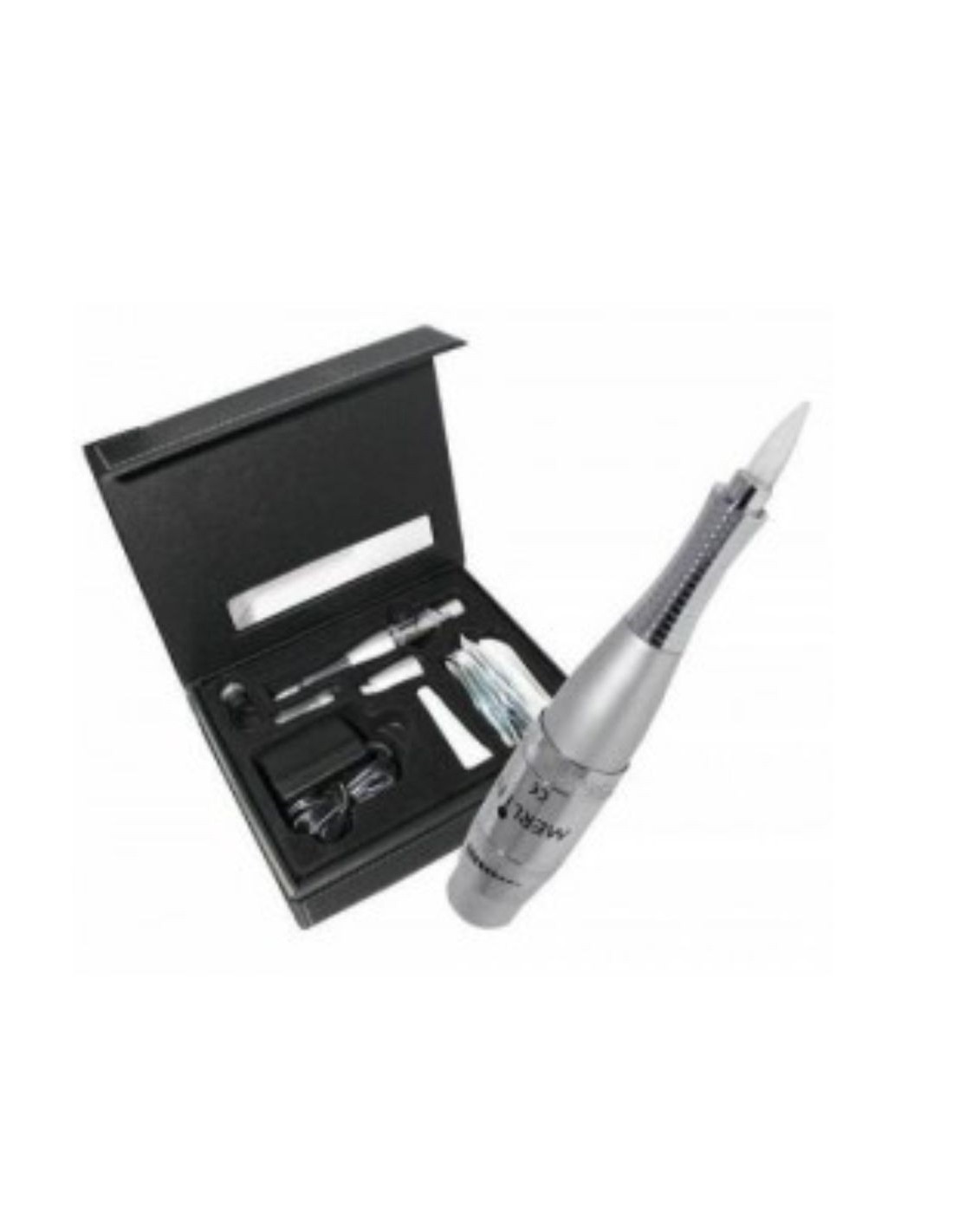 El Merlin se adapta tanto a las agujas redondas y planas, tiene 8.000 rpm , el motor rotativo de gran alcance lo hace libre de ruido.