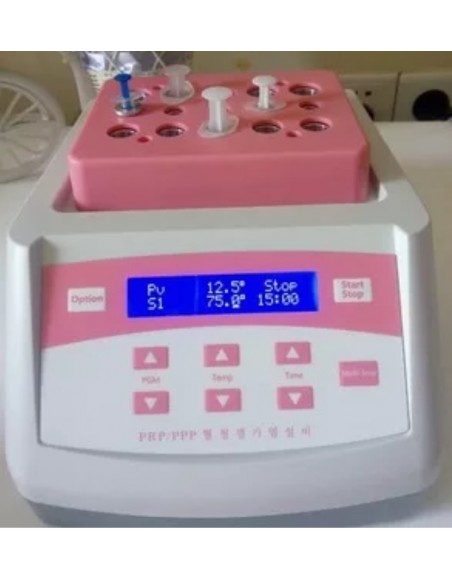 Plasma Gel Maker para preparación de gel PRP. Es un producto mejorado en su diseño y tecnología. Puede ser utilizado para la conservación y reacción de las muestras, la preparación del gel de PRP, la amplificación del ADN, la desnaturalización previa de la electroforesis y la coagulación del suero sanguíneo. Capacidad de 5 jeringas de 10ml, 5 jeringas de 5 ml, 5 de 3 ml