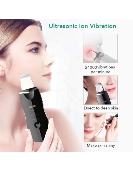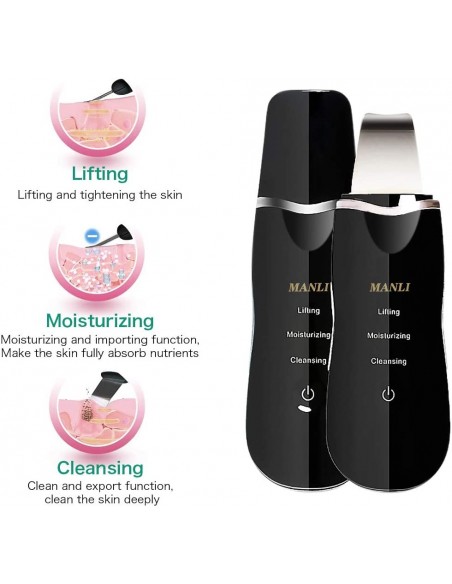 Dispositivo facial que utiliza vibraciones para limpiar puntos negros, queratina, piel muerta y acné. También denominado peeling ultrasónico, funciona mediante vibración ultrasónica, que puede penetrar profundamente en los poros, eliminar la suciedad, las células envejecidas y la capa córnea. Puede eliminar eficazmente el acné, la espinilla, eliminar las arrugas y la cutis laxa, acelerar la circulación sanguínea, promover el metabolismo, descomponer la melanina y disipar la mancha.