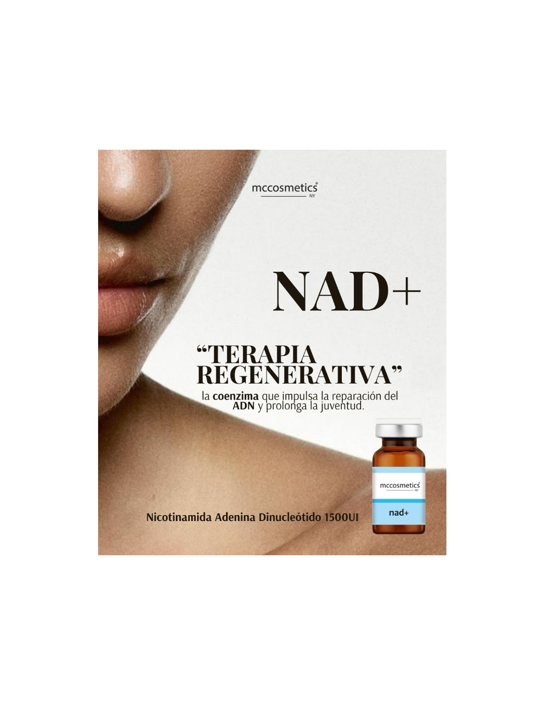 Nad + es un producto que contiene nicotinamida adenina dinucleótido (NAD+), una coenzima presente de forma natural en las células, responsable de la producción de energía y el correcto funcionamiento de los procesos metabólicos. Los niveles de NAD+ disminuyen con la edad, lo que debilita la capacidad regenerativa de la piel y acelera el proceso de envejecimiento. El uso de NAD+ en tratamientos estéticos restaura la capacidad regenerativa de la piel, mejora su firmeza y la protege de las agresiones externas.
